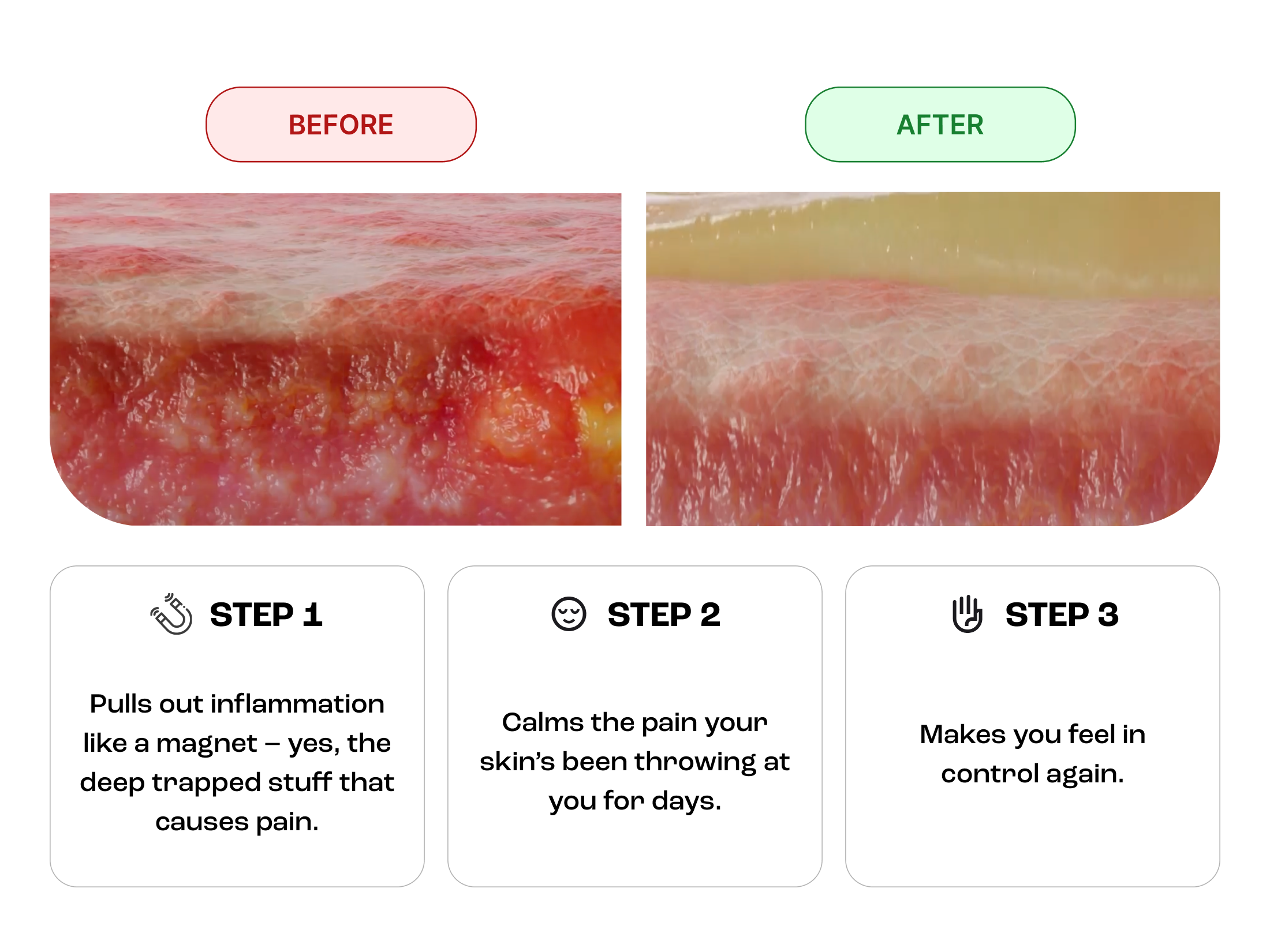 • Multi-stage healing: Soothes, supports, & manages flare-ups.