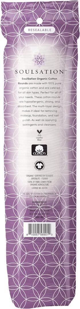 SoulSation offers 1200 Count Organic Cotton Rounds, perfect for makeup removal while being lint-free.