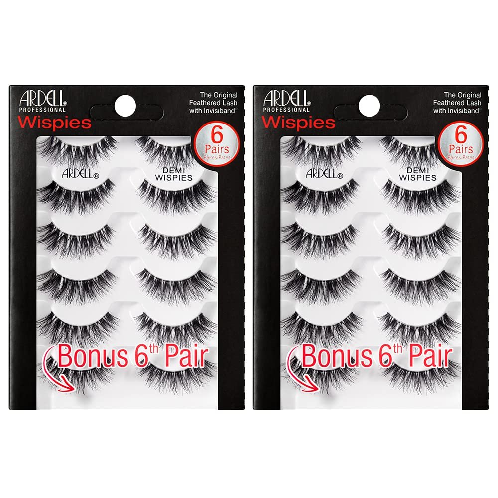Experience natural beauty with a touch of intensity with Ardell Demi Wispies Strip Lashes. These lashes offer medium volume and length, creating a pretty, wispy effect that enhances your eyes beautifully. Featuring a flared lash style for an eye-opening look. Includes two sets with six pairs each for undetectable wear.