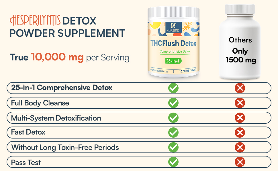 10,000 MG Per Serving Rapid Action: Designed for quick toxin removal, ideal for urgent situations. Full System Cleanse: Unlike many other products that focus on a single system, THCFlush targets liver, kidneys, digestive, and excretory systems for a deep cleanse. Unique Proprietary Blends: Primary Cleansing: Dandelion Root, Milk Thistle, and Red Clover aid liver function. Excretory & Digestive Blend: Beetroot, Bentonite Clay, and Psyllium Husk focus on toxin elimination. Rapid Cleansing: Creatine and L-Taurine accelerate the body’s natural detox process. Immune & Metabolic Blend: Green Tea and Cranberry address immunity and energy needs. Antioxidant & Fiber Mix: Inulin and Mangosteen deliver wellness and detox benefits.