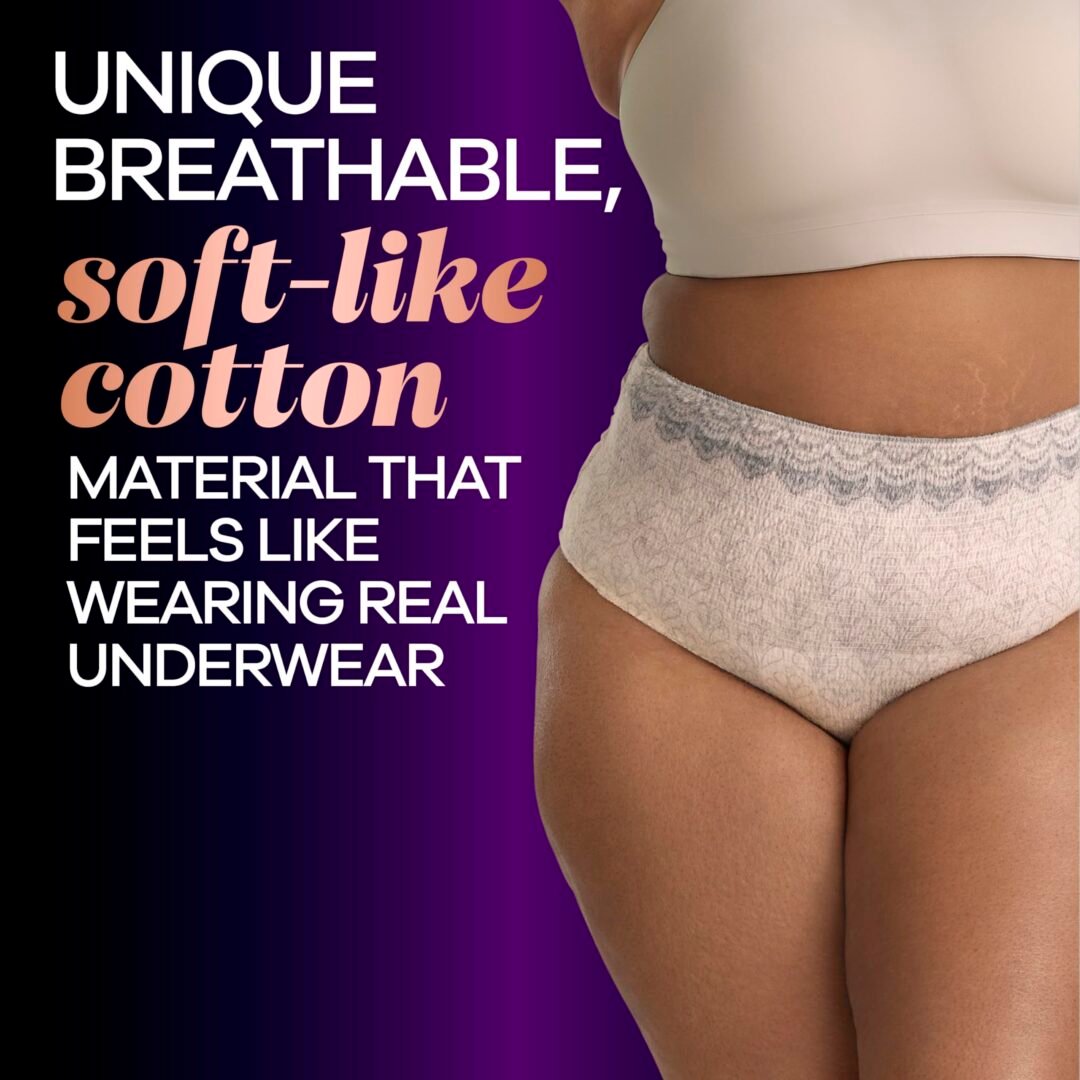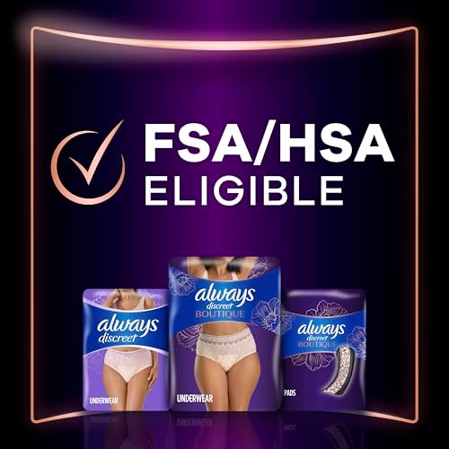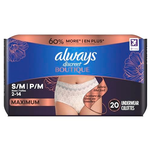 Experience maximum protection and comfort with Always Discreet Boutique Incontinence Underwear for women. This disposable underwear features a form-fitting design with a soft, silk-like fabric that hugs your curves, providing confidence and security. The ultra-thin core quickly turns liquid to gel for long-lasting protection. With OdorLock technology and LeakGuard protection, you can stay fresh and leak-free all day long. Find the perfect fit with the Always Discreet My Fit chart and choose between two stylish options: Black and Rosy.