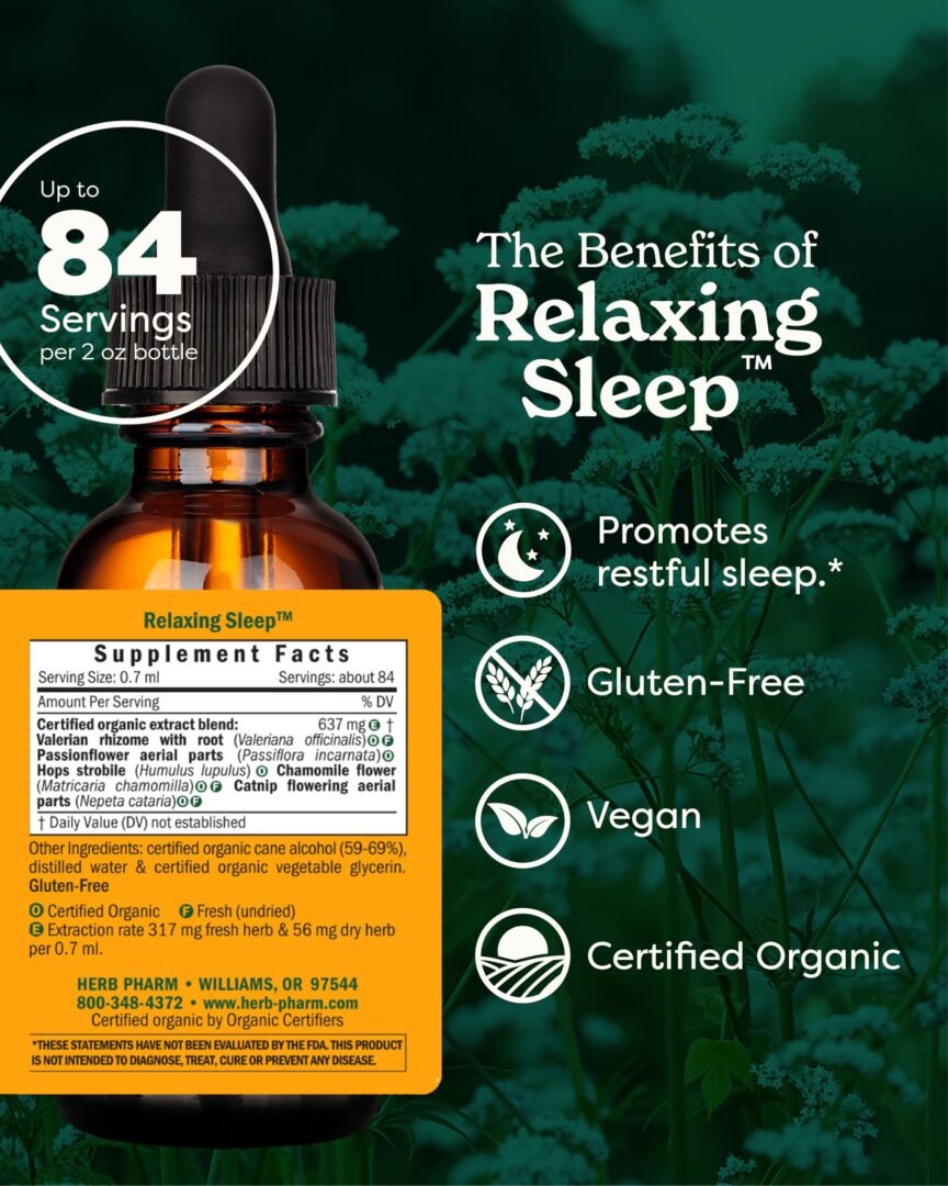Promotes relaxing sleep with Herb Pharm’s 2 oz liquid extract.