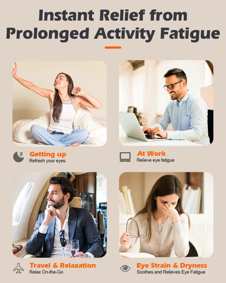 Enjoy the convenience of a high-quality, removable cover that effortlessly maintains its freshness. Durable and hygienic, this cover can be used repeatedly and is easy to clean. Super Fast Charging Takes 2 hours to be fully charged and can be used for about 4 times/20 minutes every day. We recommend a 2-hour charge post-shipment due to transportation power consumption. Wide Coverage & Velcro Fastener Heated sleeping mask features a wider band and velcro design, minimizing pressure on the ears and temples, won’t tangle your hair or feel tight, even when worn for long periods. Velcro Fastener can be easily adjusted in size and suitable for all teenagers and adults. Gentle Cotton Fabric Soft and breathable protein cotton fabric gives your eyes a gentle touch. Suitable for all skin types. The design of the eye massager ensures it fits snugly, securely, and comfortably on your nose.