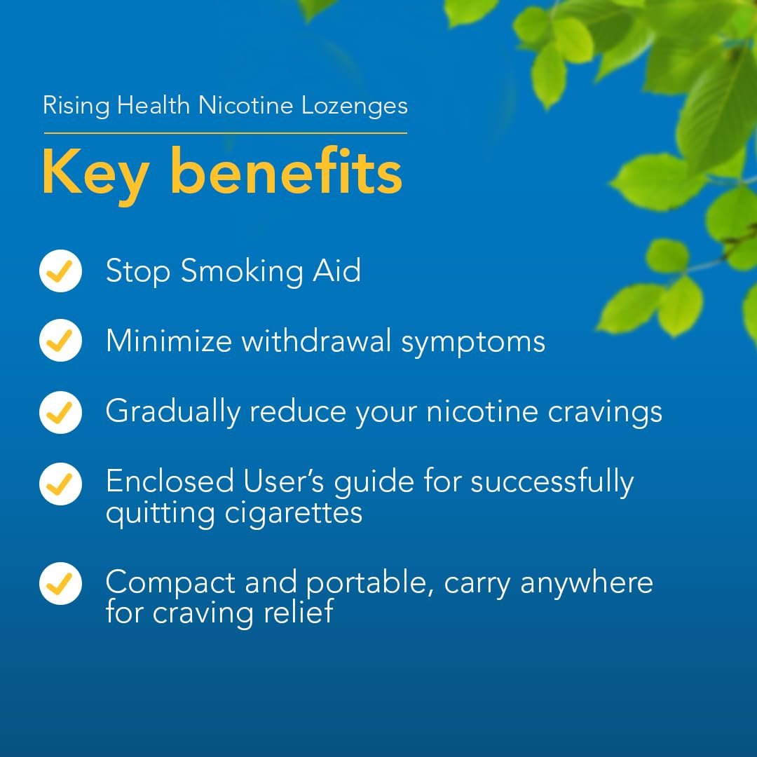 Take a step towards a tobacco-free life with Rising Health Nicotine Mini Lozenges. Say goodbye to harmful effects and enjoy a safer alternative to smoking while reducing withdrawal symptoms.