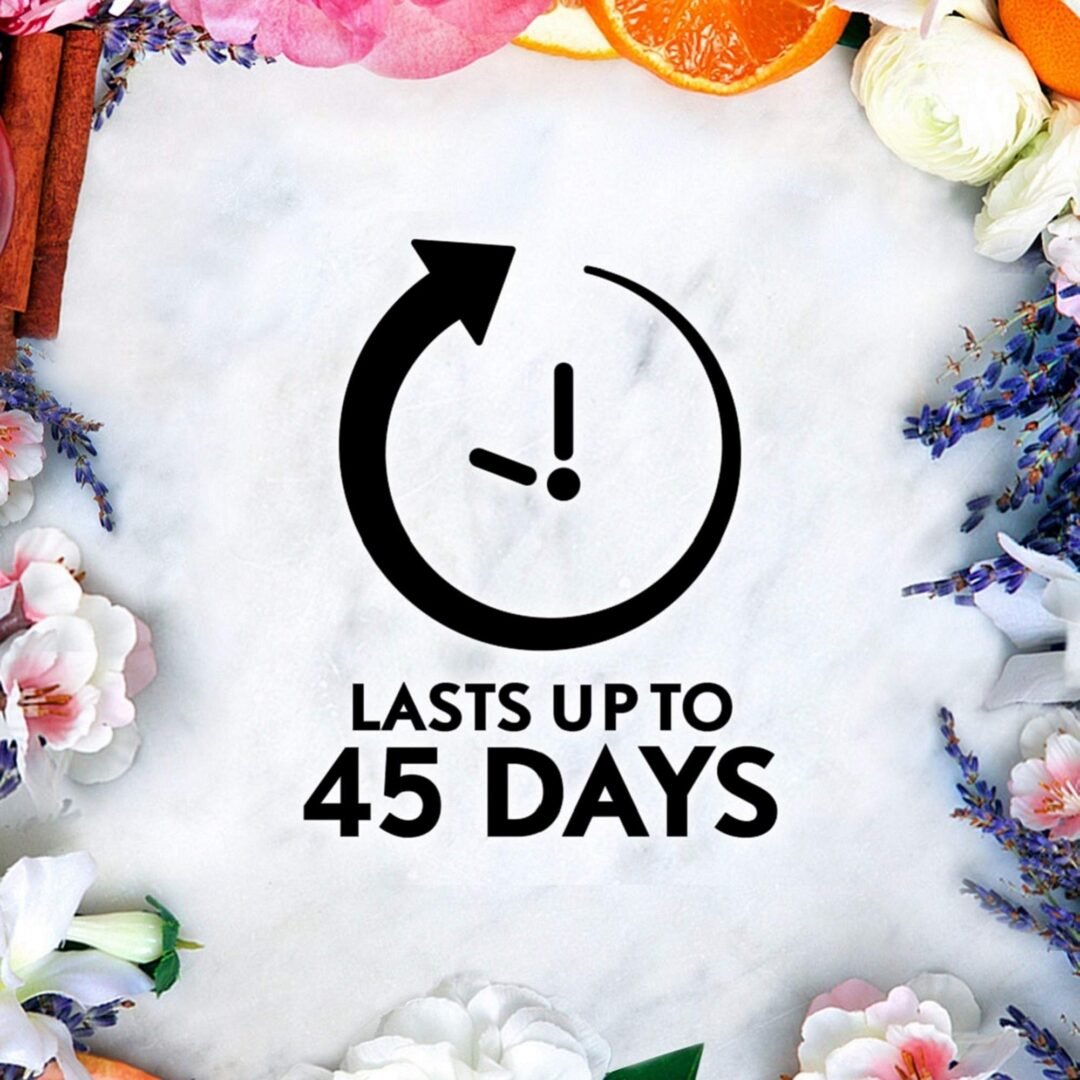 This device offers enhanced aesthetics, a low refill indicator, and an improved 2x fragrance boost. With up to 25 fragrance options to choose from, the mist lingers in the air, providing a sensory experience. Enjoy the Aroma range with happiness, sleep, unwind, and rejuvenate scents for an optimal fragrance experience that lasts up to 6 weeks per refill.