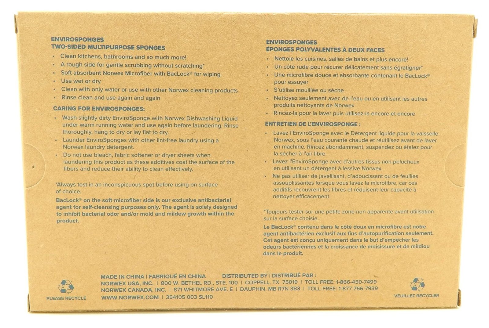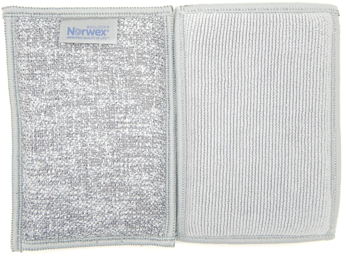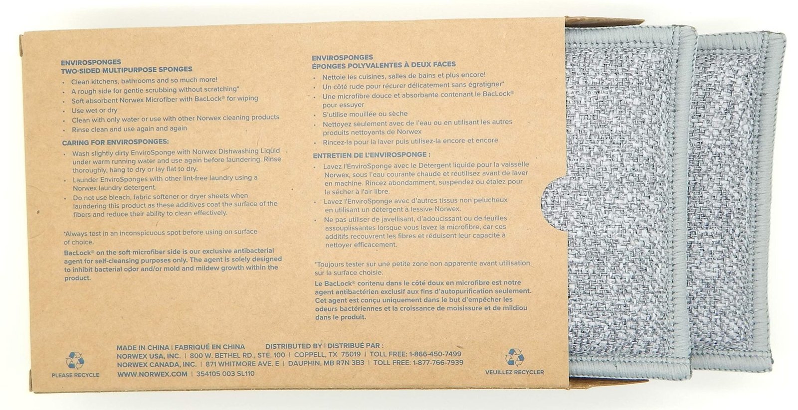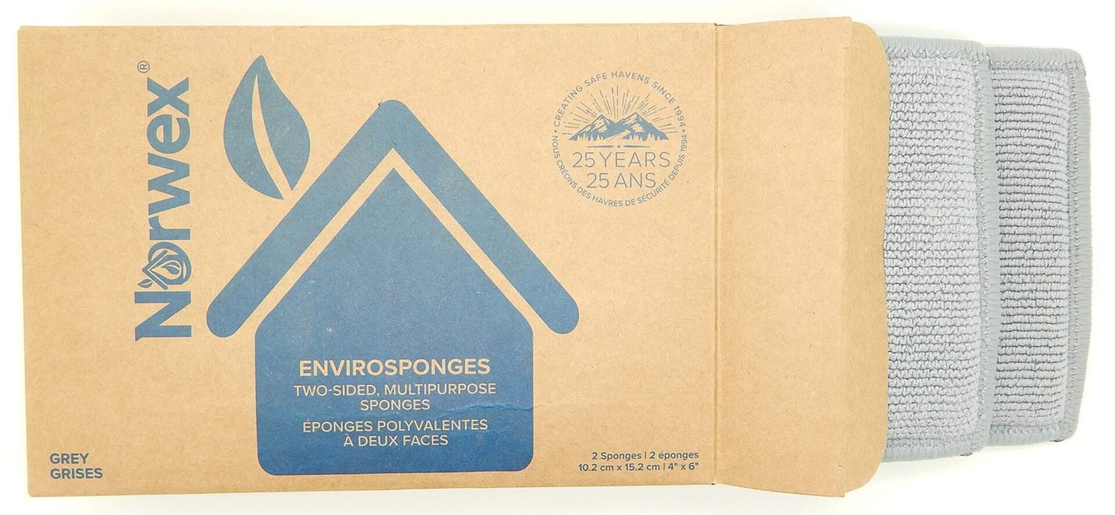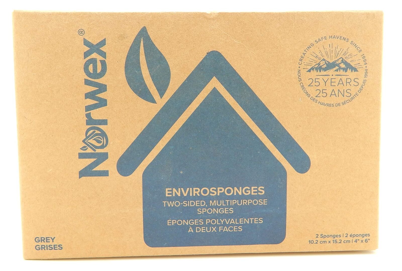 Norwex EnviroSponges are dual-purpose sponges designed for efficient cleaning. One side removes hard stains, while the microfiber side absorbs spills. Ideal for scrubbing soap scum, hard water deposits, and more. This 2-pack includes sponges for kitchen and bathroom use.