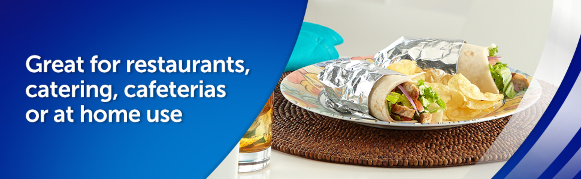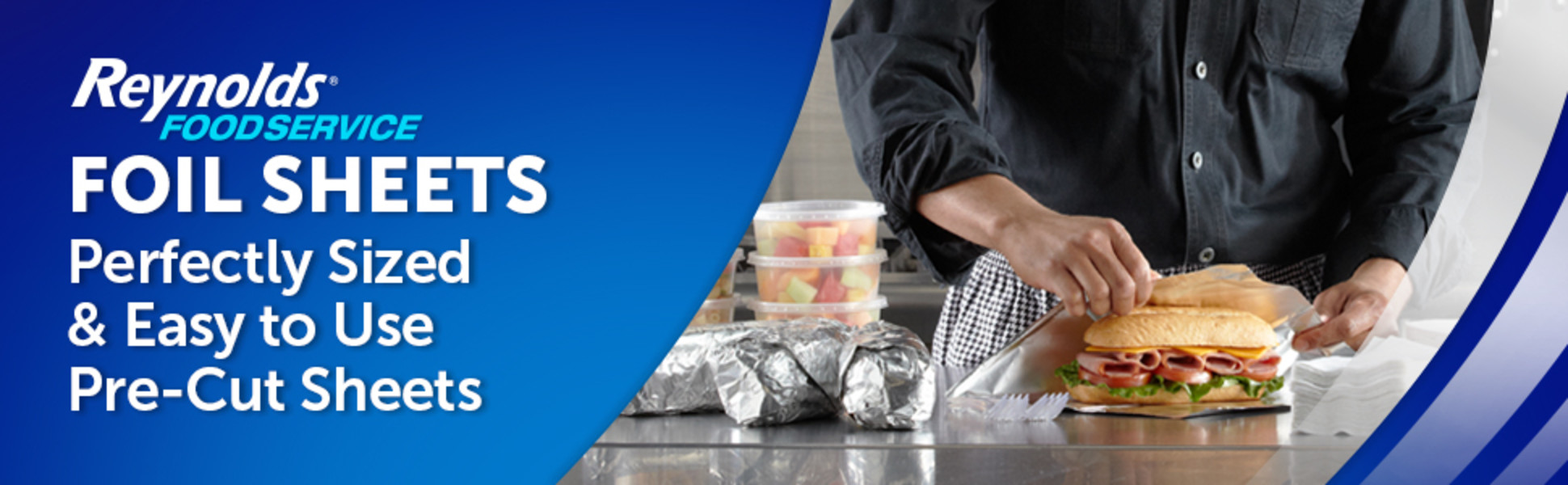 Reynolds Foodservice Aluminum Foil Sheets combine the versatility of aluminum foil with the convenience of pre-cut individual sheets to simplify food serving and storage. These Foil Sheets provide just the right amount of foil to wrap sandwiches, burgers, and more, keeping menu items hot and fresh in restaurants, catering operations, or school cafeterias. Even home cooks can enjoy the convenience of these pop-up Foil Sheets for keeping food warm or wrapping up leftovers. Made in the USA, Reynolds durable Foil Sheets are great for food prep, storing leftovers, and taking foods on the go. Dispensing is quick and easy thanks to the pop-up design, allowing you to grab individual sheets one at a time with one hand. Because these sheets are made from Reynolds Wrap aluminum foil, they are easily moldable to whatever you’re wrapping, creating a good seal to shield against moisture, odors, and grease.