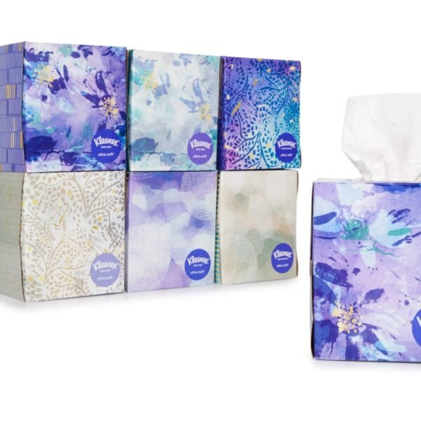Kleenex Soft Facial Tissues are the perfect blend of indulgent softness and dependable strength. Designed for comfort and protection, these 3-ply tissues offer unbeatable softness. Each pack contains 18 cube boxes with 65 tissues per box, for a total of 1,170 tissues. Kleenex Soft tissue is America’s softest and most preferred, making it ideal for cold & flu seasons. Elevate your home decor with the variety of colors and designs in each box. Keep your hands and skin well cared for with Kleenex Soft facial tissues!