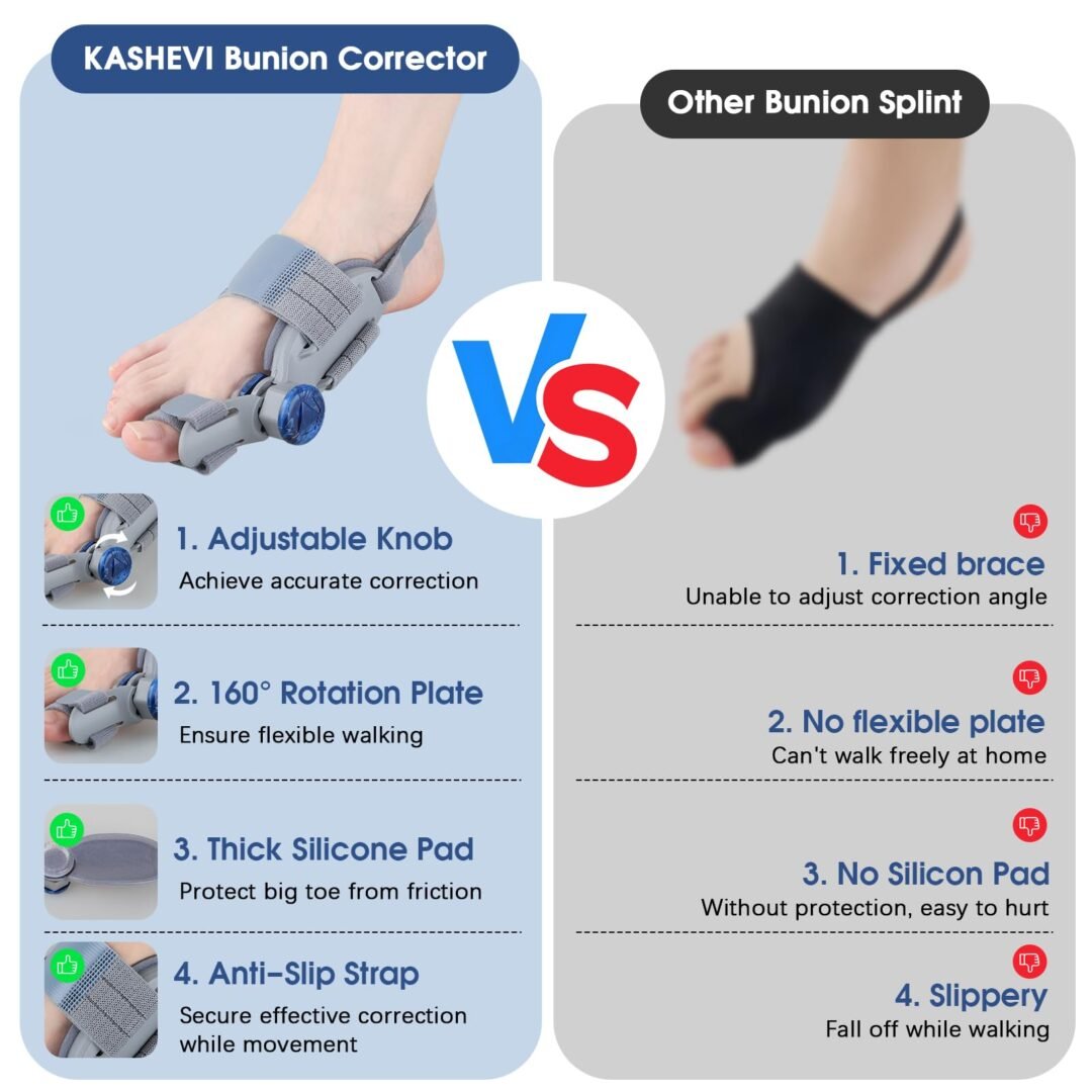 No. This bunion splint should not be worn while swimming, on the beach or in salty water. Salt or sand may cause damage to the corrector. How fast will I see the difference after using this splint for my bunion? Generally speaking, it’s recommended to use the bunion corrector for at least 30-60 days to see the result. But it will also depend on the severity of your bunions. How long can I wear it for each time? It is suggested to start with 30 minutes a day and gradually build up to 1-3 hours a session. When you feel comfortable, you can wear it while relaxing, reading, or sleeping. What if I find it uncomfortable? You may not get used to wearing this bunion fix at the first time, but after 1-2 sessions, you’ll feel much better.