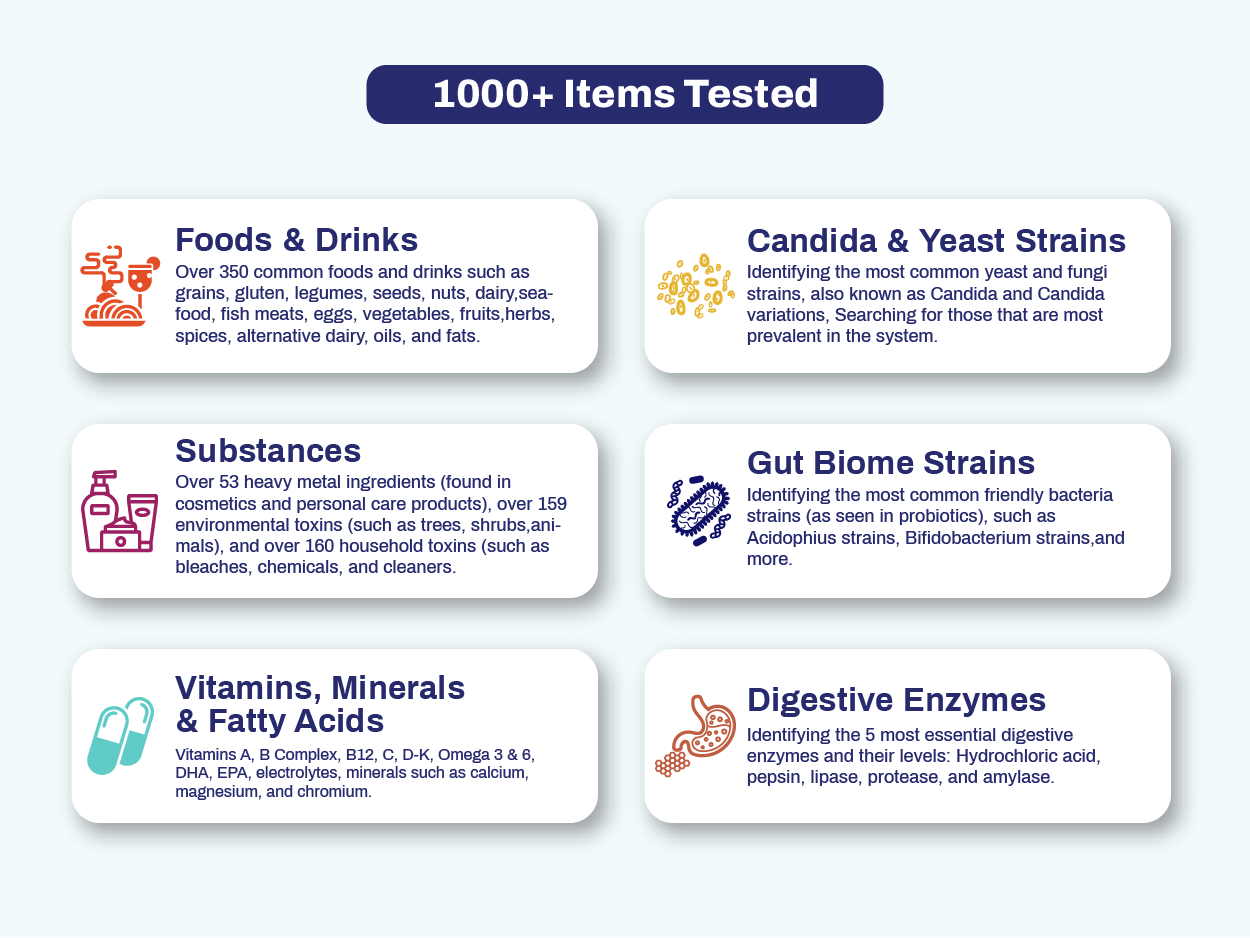 - Comprehensive Testing: Discover food sensitivities, intolerances, vitamin deficiencies, and gut health imbalances.