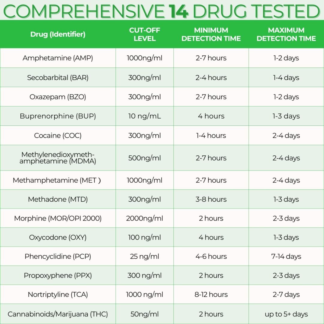 - Feature: 14 Urine Drug Test Strips