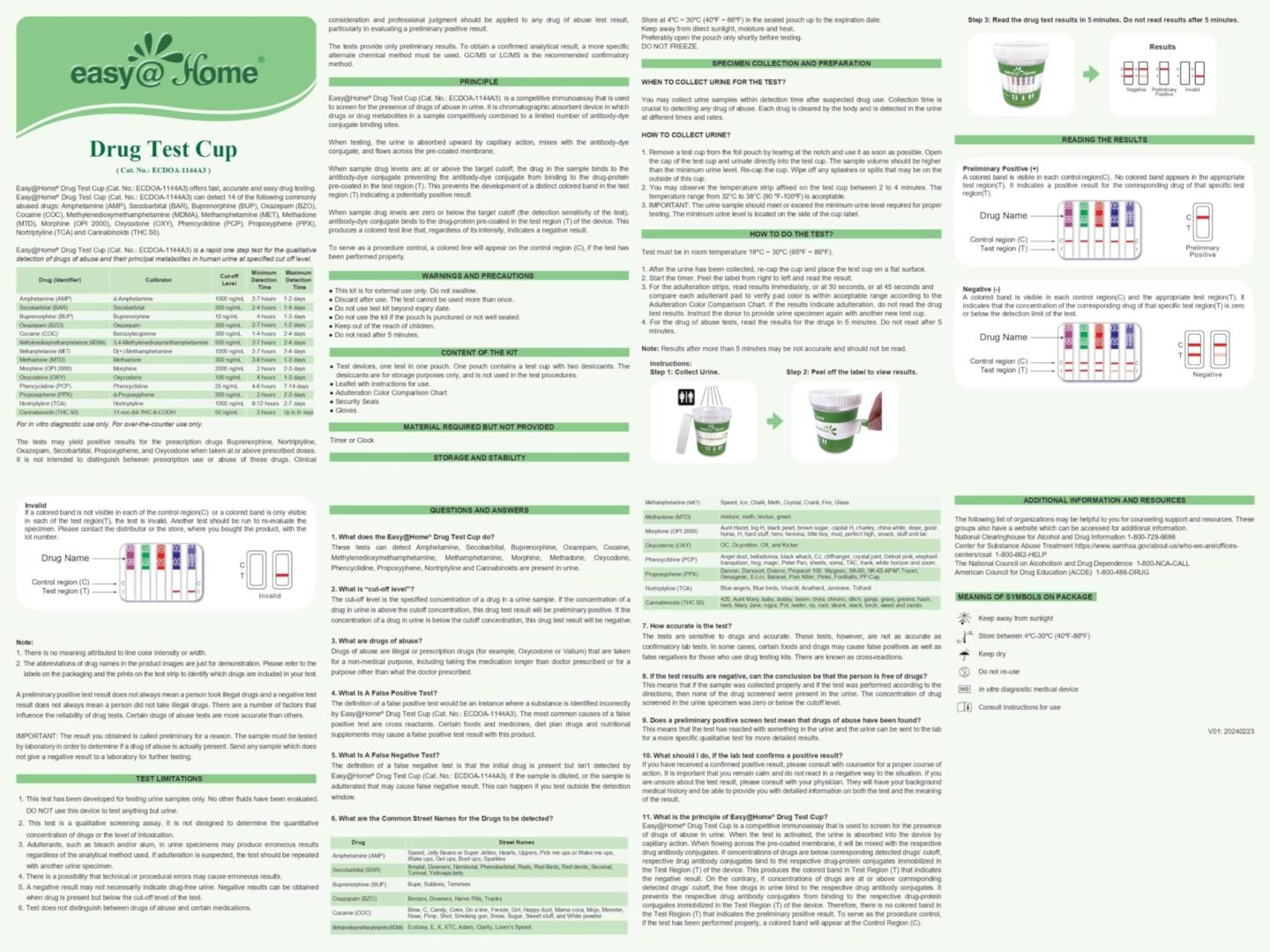 Learn about the concentration threshold that determines positive or negative test results. Shelf-life of the kit is 24 months. Positive result indicates drug presence above the cut-off level.
