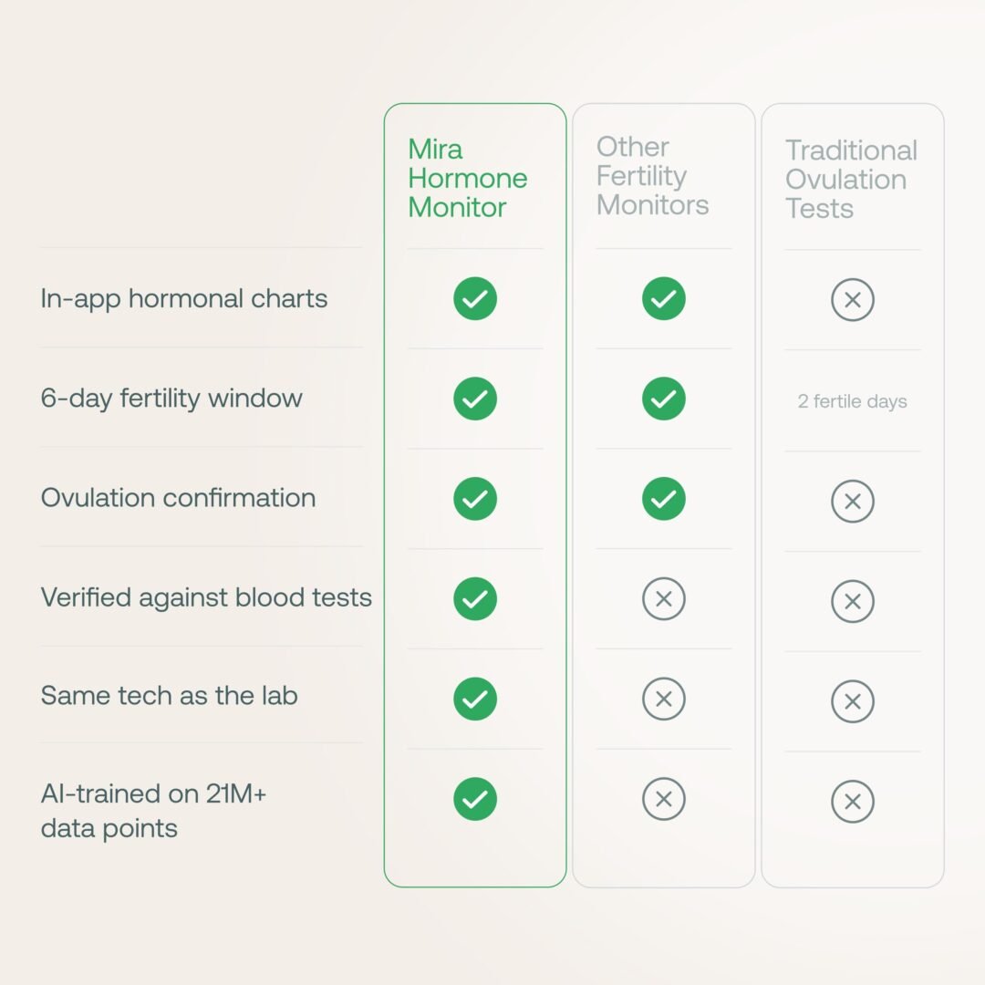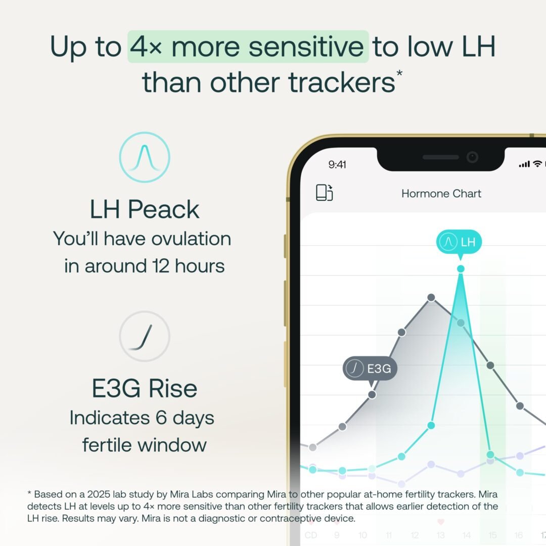 • Lab-Grade Accuracy: Mira’s AI-powered monitor tracks key fertility hormones with lab-grade precision for faster conception.