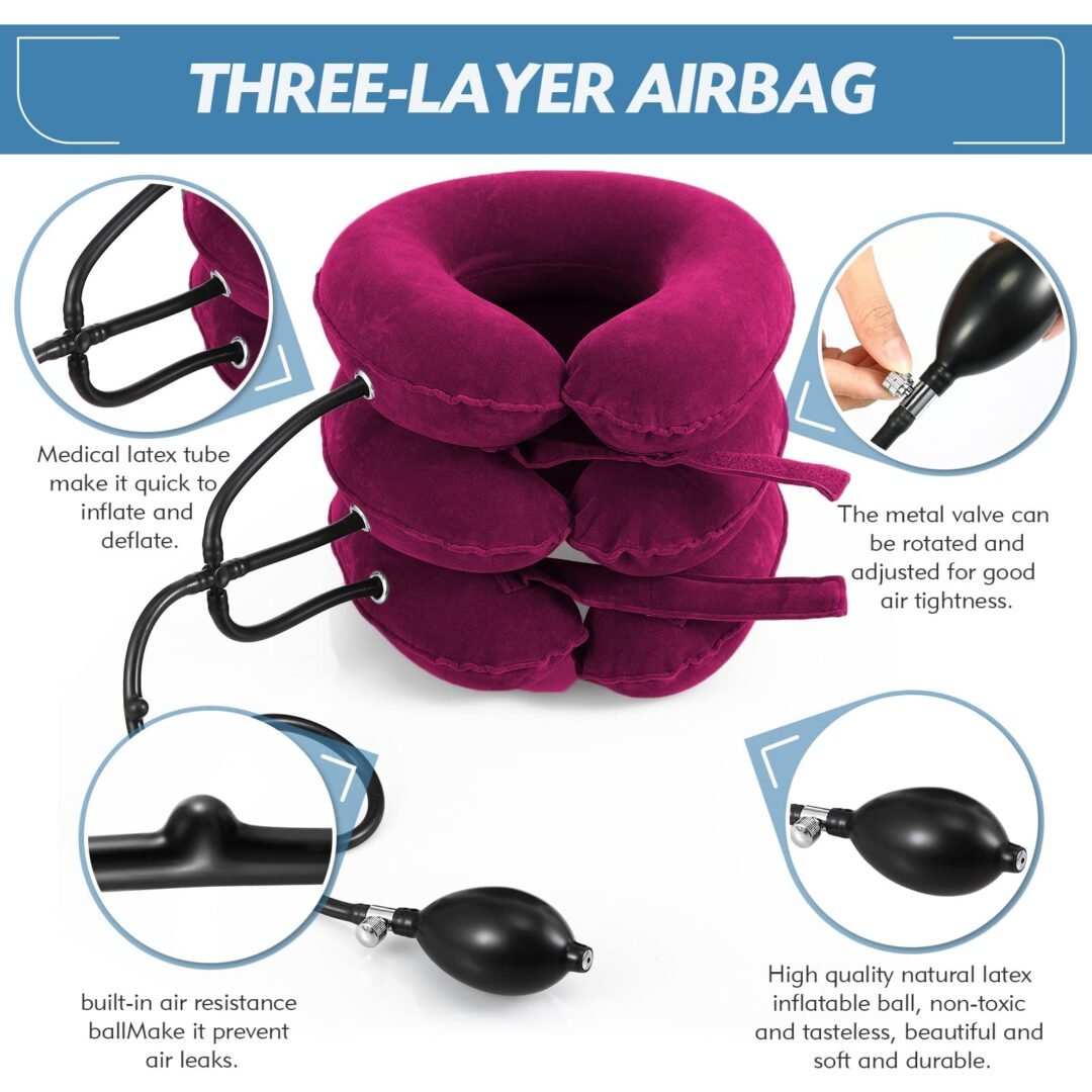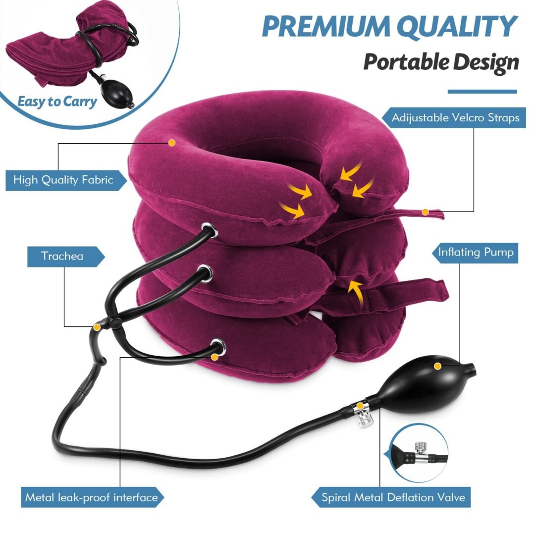 - Adjustable & Inflatable Design: Customizable neck support for relief.