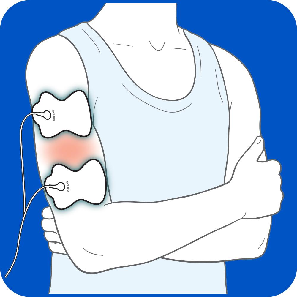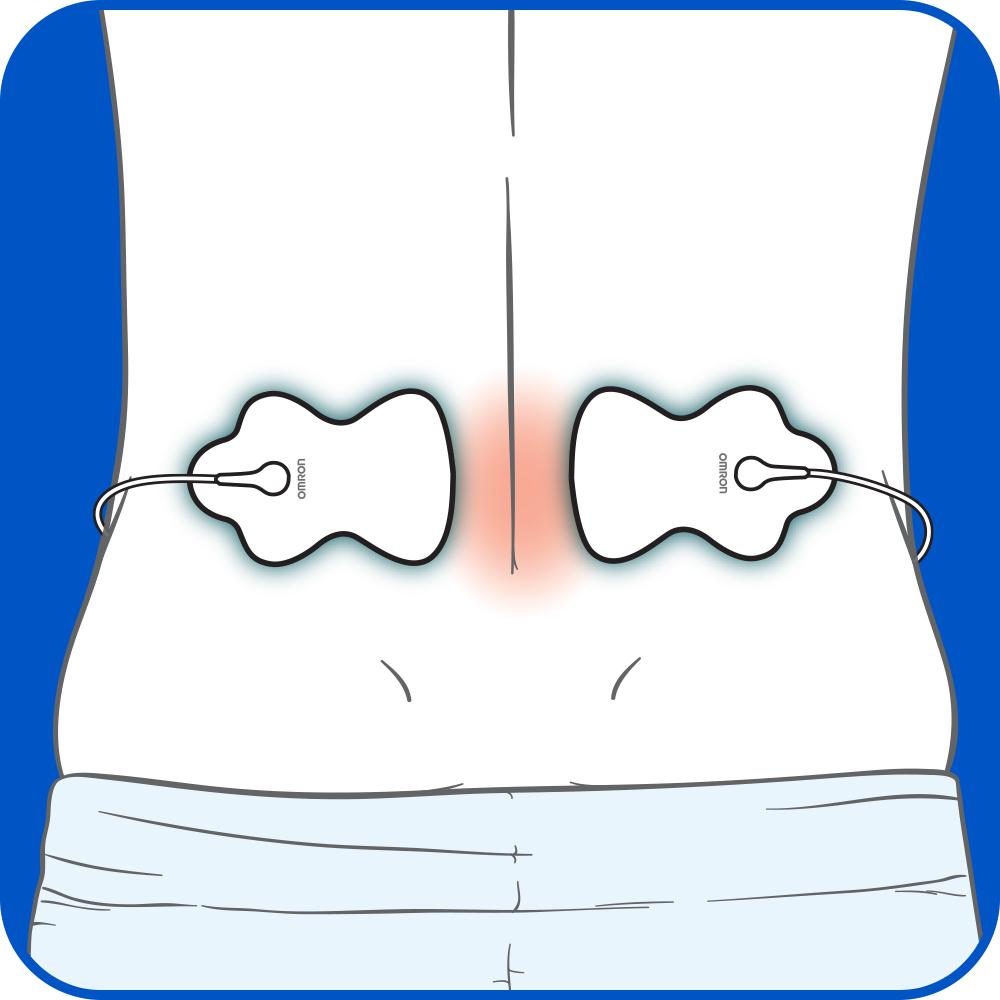 Lower Back Attach both pads on the lower back with the backbone in the center. Do not place on the backbone or the spine. Shoulder Attach both pads on the shoulder according to your pain. Hip/Thigh Attach both pads on either side of the area with pain. Upper Arm – Elbow Attach both pads on either side of the region or joint where you feel pain.