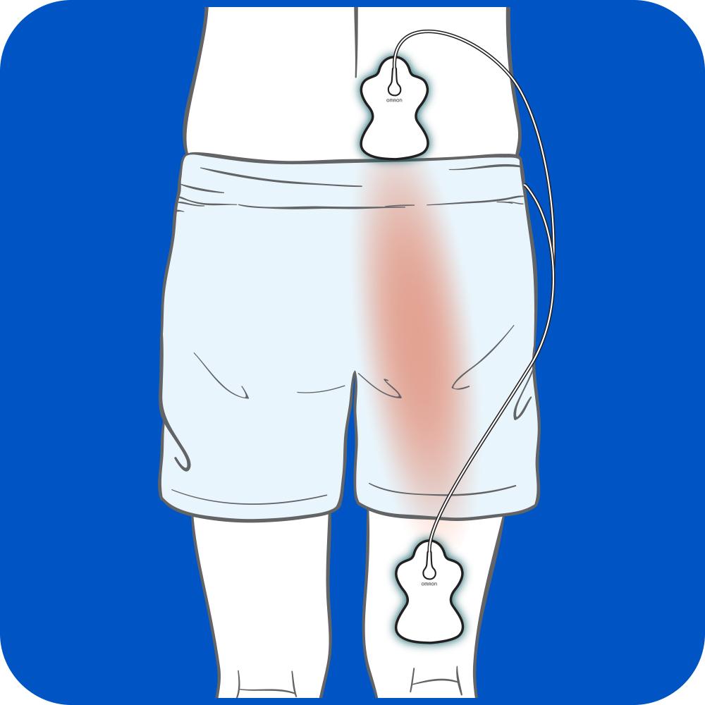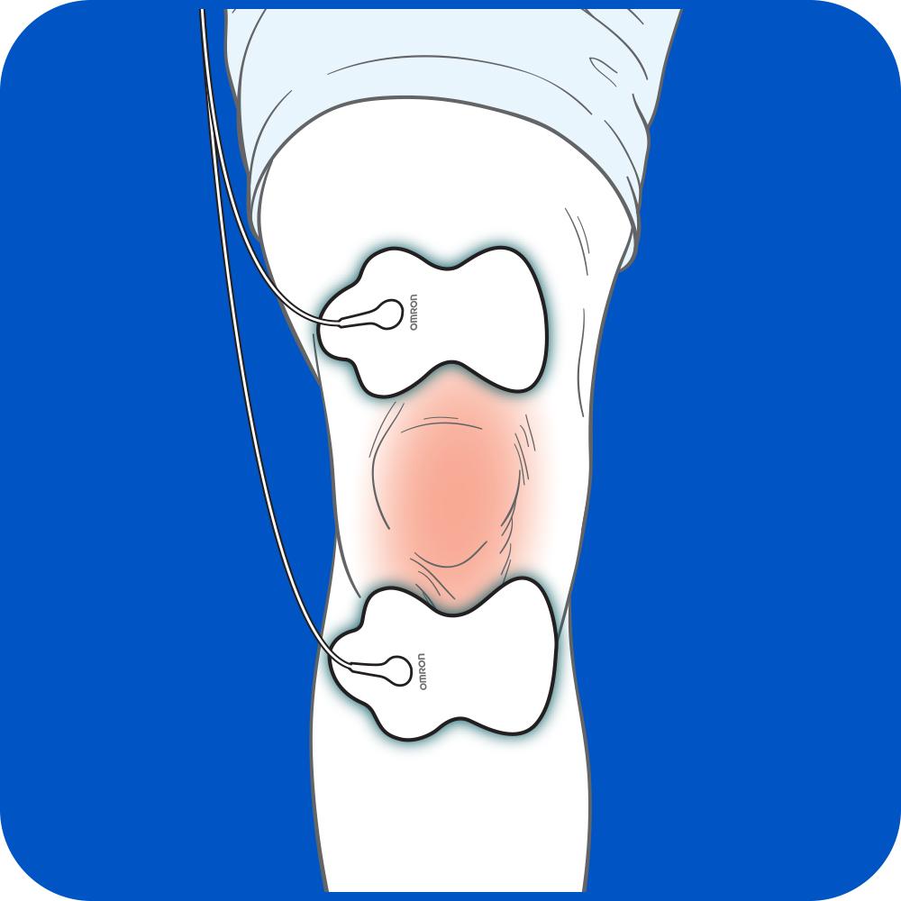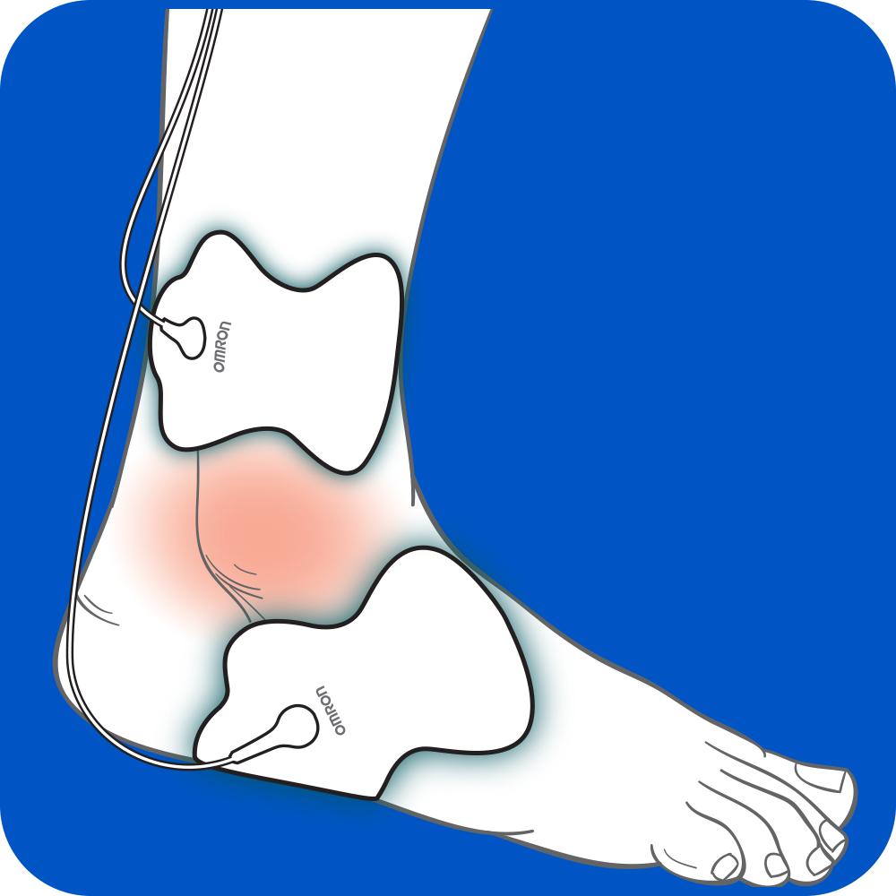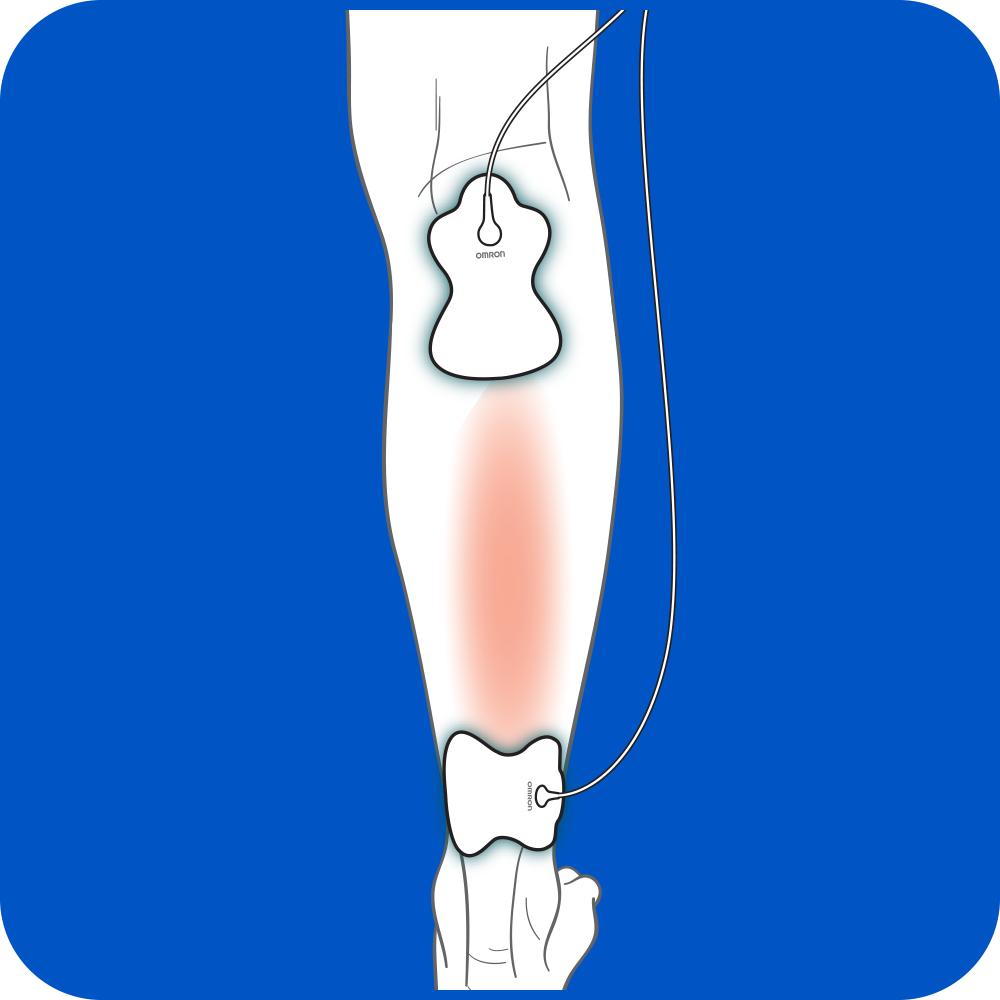 Attach pads on the left for pain on the outside of your ankle/foot. Attach the pads on the right for pain on the inside of your ankle/foot. (Do not place on the bottom of both feet at the same time). Calf Attach both pads on the calf/leg where you feel pain. (Do not place electrode pads on both legs at the same time). Knee Attach both pads above the knee or above and below the joint with pain. Sciatic Attach one pad below and above the region in pain, both on the same side (not on the spine).