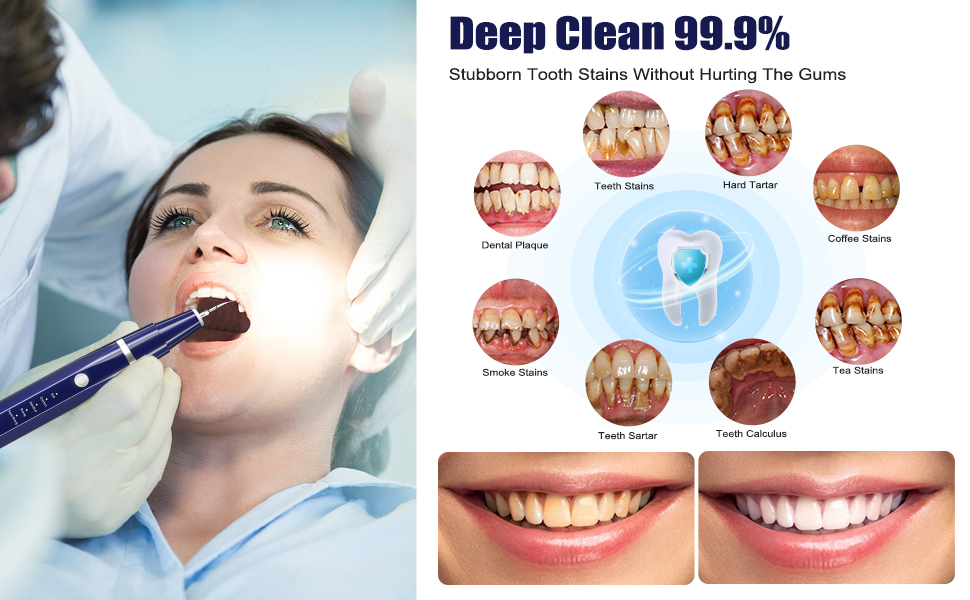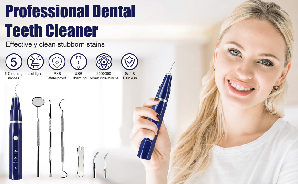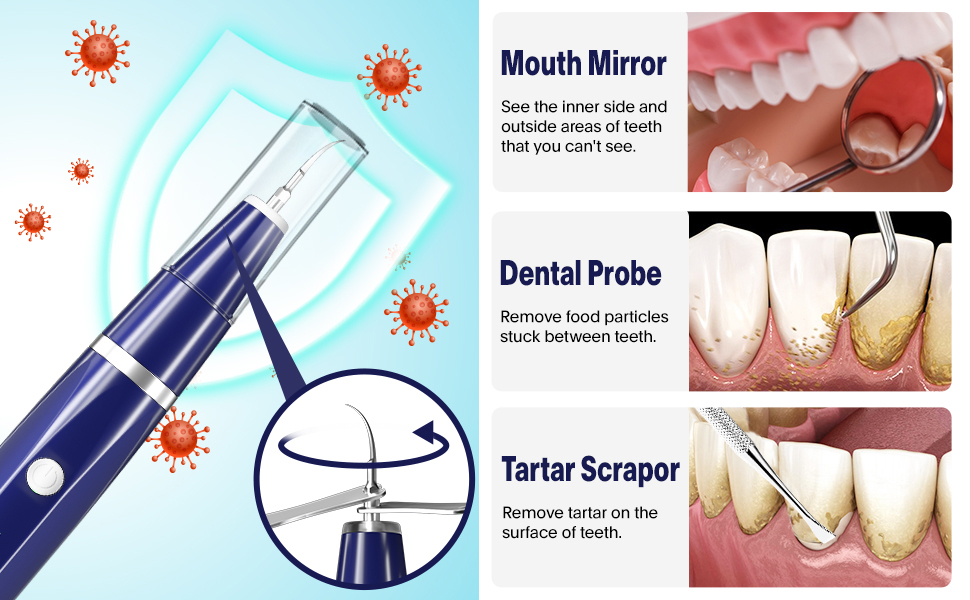 Utilize the built-in spotlight and oral mirror for faster, more precise tooth dirt removal. Keep your teeth and gums healthy with high-frequency vibration technology that effectively removes plaque, tartar, and stains from tough spots and corners.