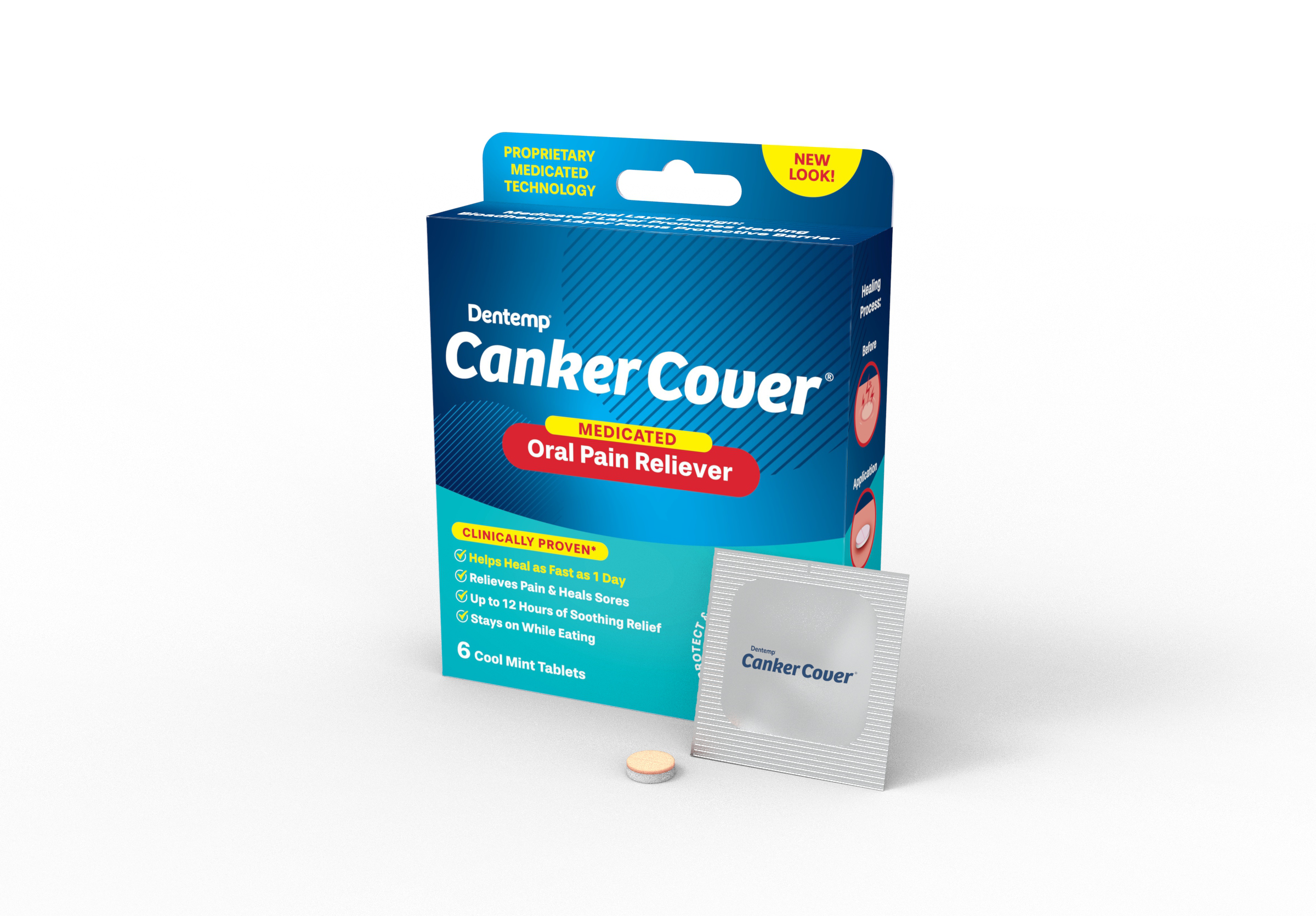 About Us For over 40 years, Dentemp Oral Care has brought dental technology to your home, making oral care simple, affordable, and fun. Canker Cover Tablet Dentemp Canker Cover offers quick relief and protection for canker sores, mouth irritations, and oral sores caused by various factors. The soothing menthol provides instant pain relief, promoting rapid healing and normalcy. It can also be used for other mouth irritants like mouth ulcers and abrasions due to braces. Each box contains 6 long-lasting mint-flavored tablets.