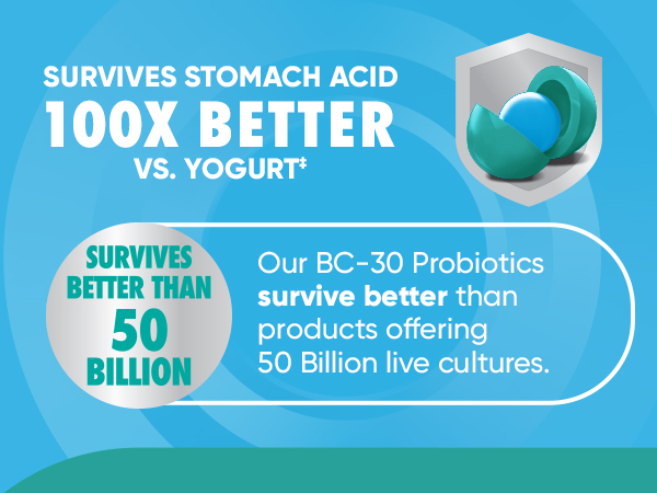 - Survives Stomach Acids: Enhanced survival rate through stomach acid to reach the intestines, providing better effectiveness than most probiotics and yogurt.