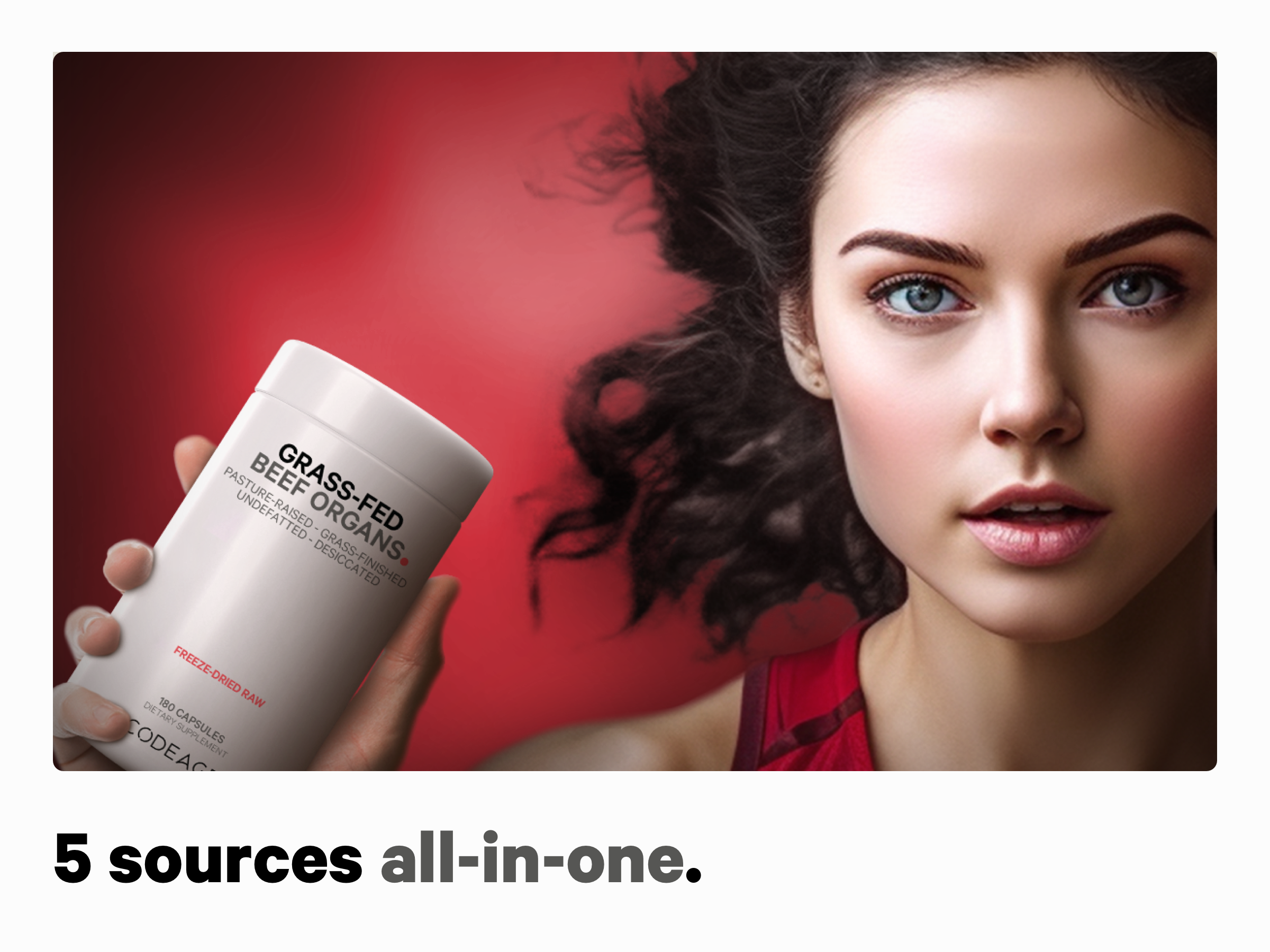 Codeage Grass-Fed Beef Organ supplement is a multi-organ supplement that combines beef liver, heart, kidney, pancreas, and spleen, sourced from grass-fed, grass-finished, and pasture-raised beef. Each bottle includes a one-month supply, encapsulated for convenient daily use. Codeage Grass-Fed Beef Organs supplement features freeze-dried, non-defatted, and desiccated bovine meat. This grass-fed beef organ capsule blend provides an all-in-one supplementation of multiple organ meats as a superfood supplement. Different meats can contain various ingredients, including vitamins A, B2, B6, B12, folate, choline, and pantothenic acid. They may also offer a source of minerals such as iron, zinc, copper, phosphorus, selenium, and potassium. Bovine meats may also contain hyaluronic acid and peptides in its nutrient profile. Part or all the ingredients provided in this grass-fed bovine organs capsules supplement can be received in adequate or extra amounts from food and regular diet alone. Individual results may vary and depend on a lot of factors, including age, health conditions, diet, genetic markup, lifestyle, physical activity, and regular exercise. *These statements have not been evaluated by the Food and Drug Administration. This product is not intended to diagnose, treat, cure, or prevent any disease.