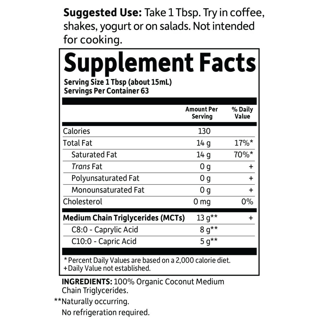 Designed for athletic energy, paleo/keto diets, and brain health, Dr. Formulated MCT Coconut Oil is 100% organic, providing 13g of MCTs—including Caprylic and Capric acids—per serving. MCTs are healthy fatty acids easily digested, offering energy burned for fuel. †Not evaluated by FDA.