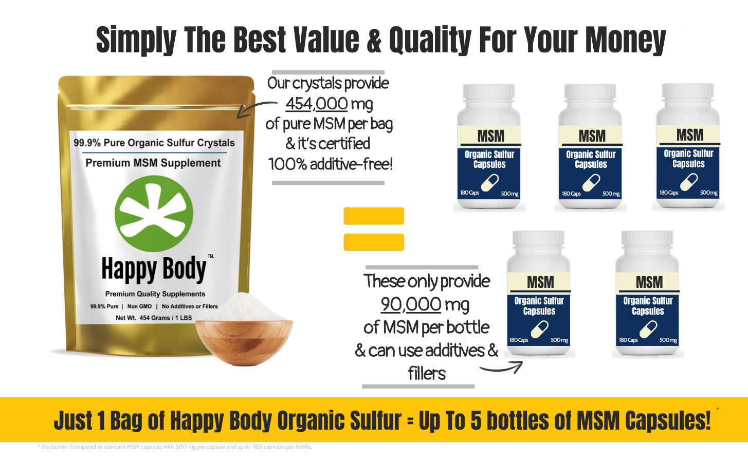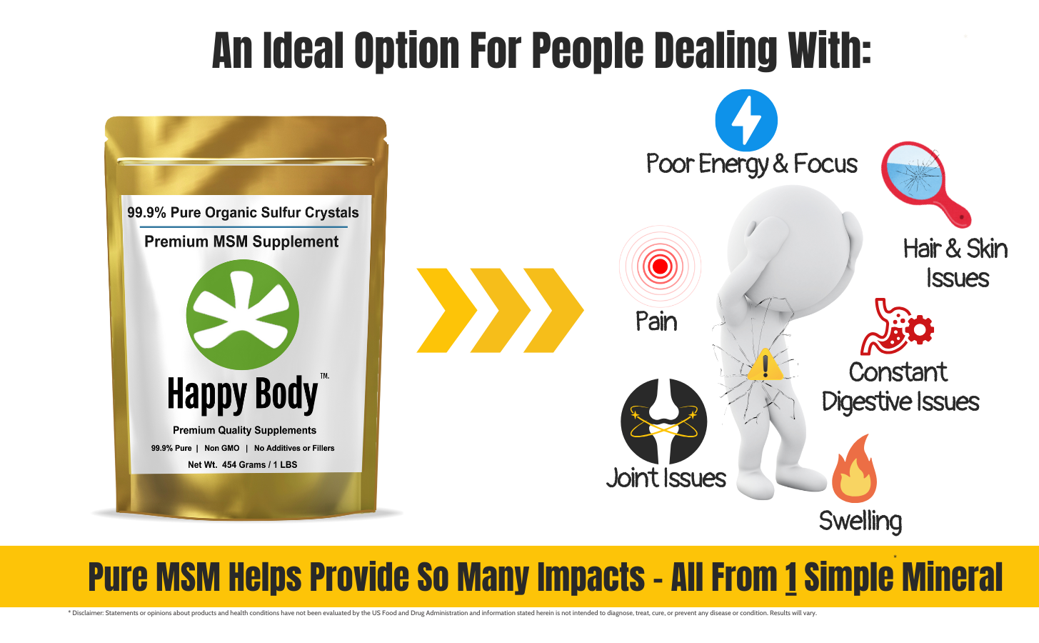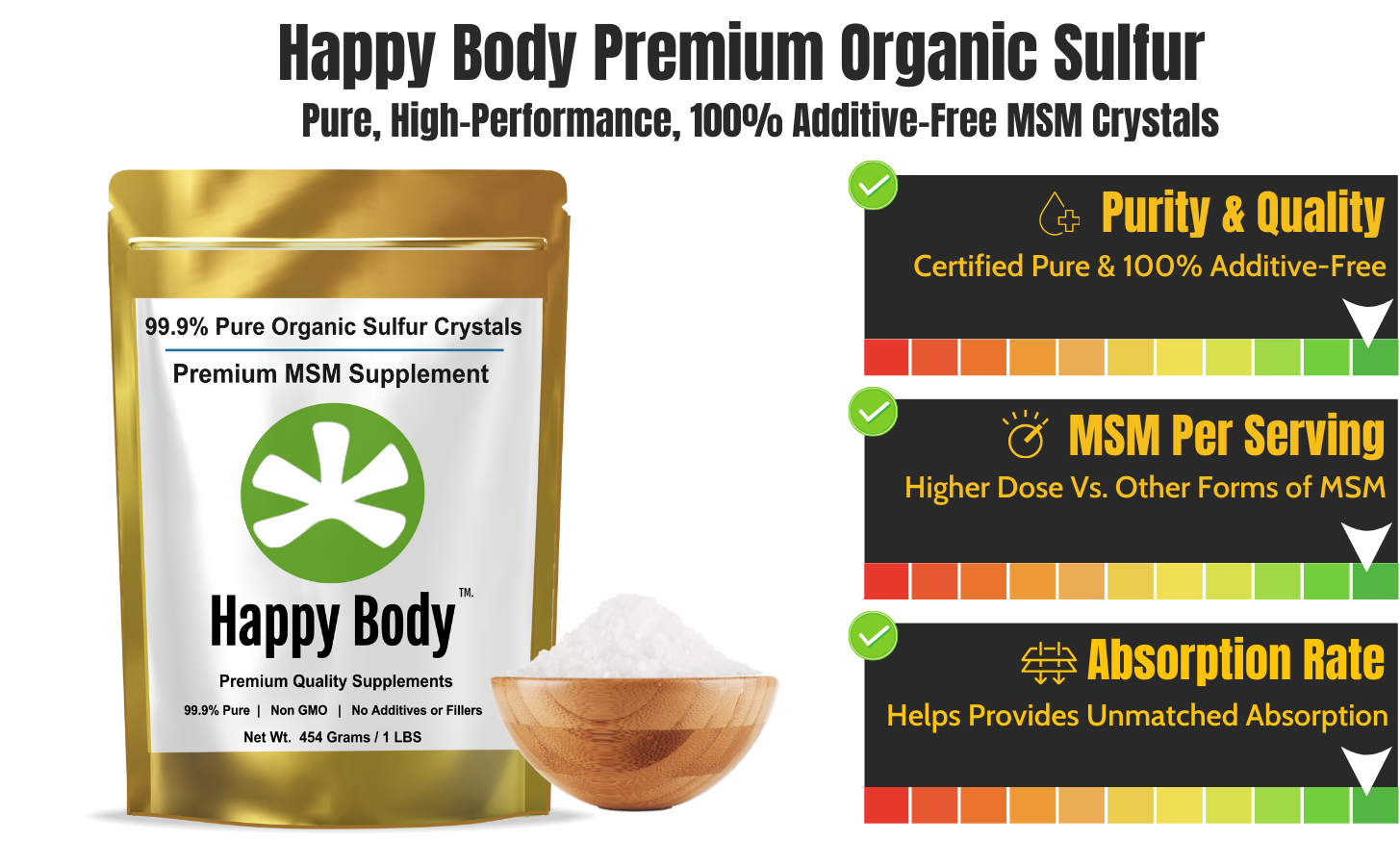 Happy Body Organic Sulfur Is Pure, High-Performance MSM Crystals.