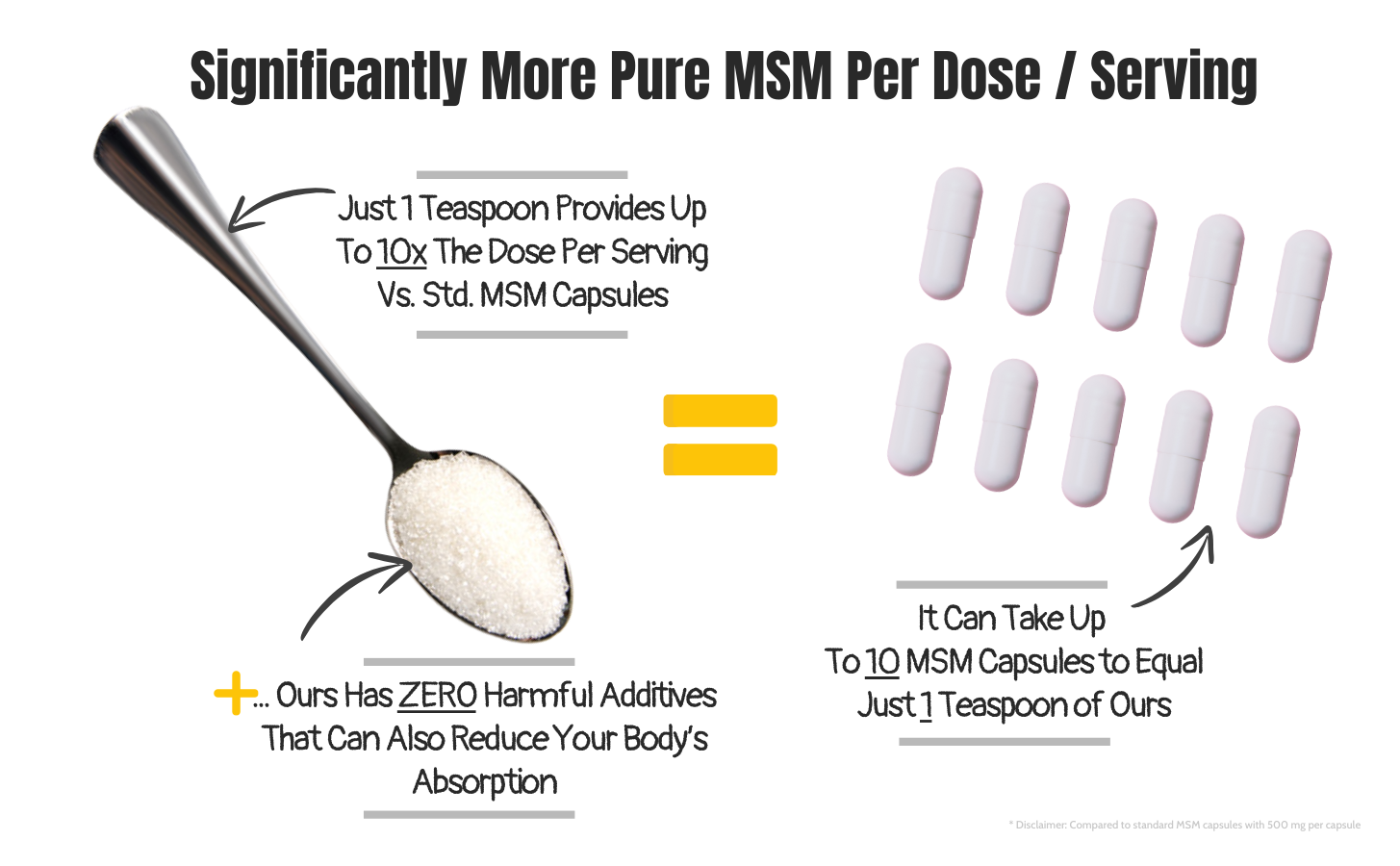 Our Organic Sulfur provides 5x more MSM than standard capsules, offering unmatched quality at a great price.