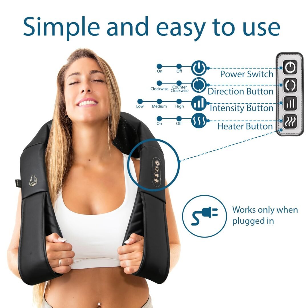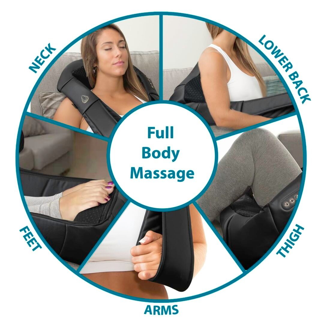 Features Positioning Handles, Shiatsu Nodes, Multi-Directional Heat, Function Control Panel, and DC Power Port